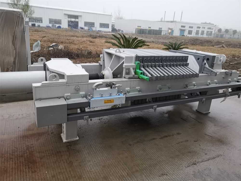 全自動廂式壓濾機與普通廂式壓濾機的不同之處在于多了自動拉板系統,自動接液翻板,自動清洗濾布等系統。使設備操作更加智能化自動化。整機結構設計科學合理,機械強度高、結構穩固、經久耐用并且便于操作和維護。